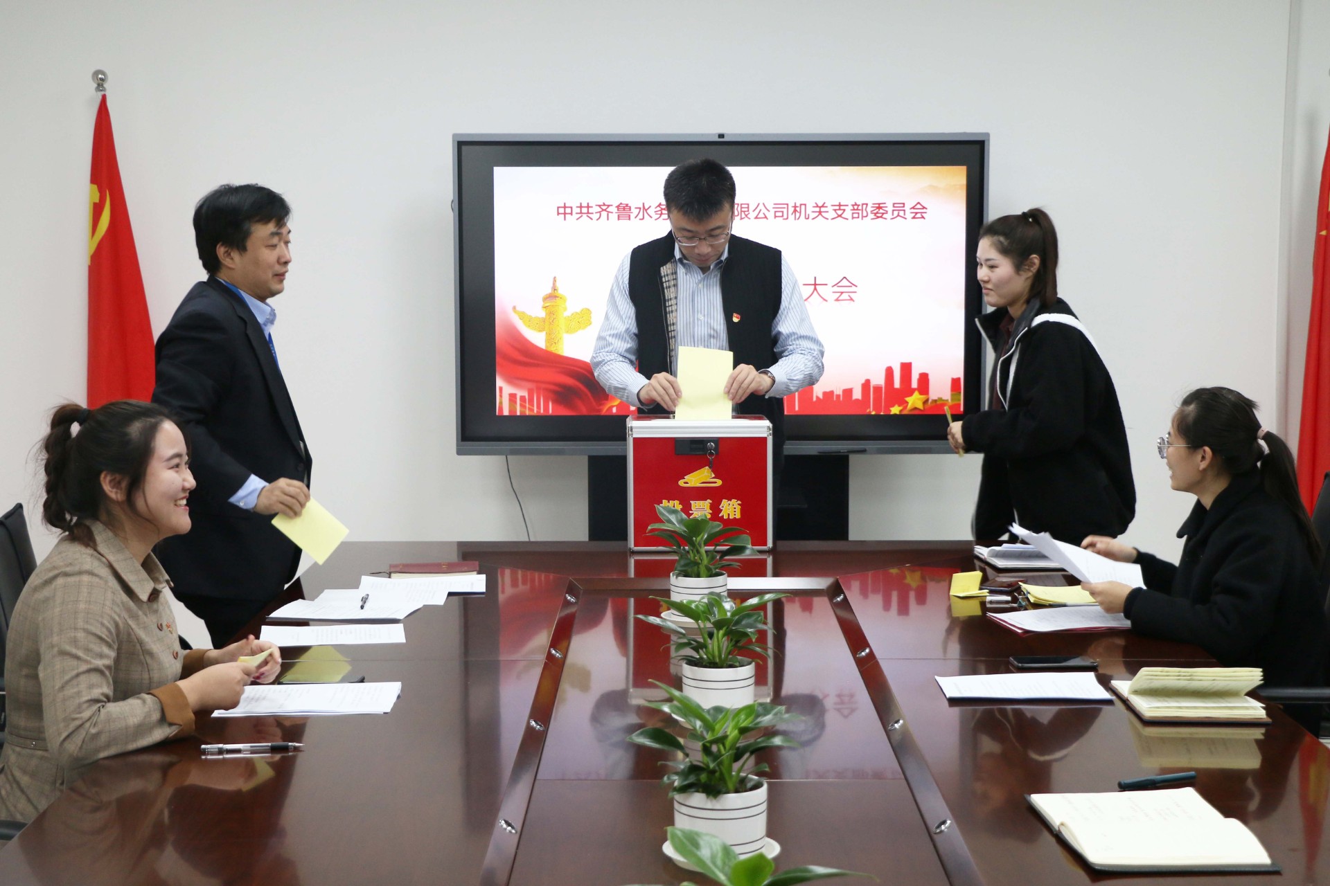 11月29日,中共齐鲁水务集团有限公司机关支部委员会第四季度党员大会在济召开,会议旨在接收苏振宁、宋永成两位同志为预备党员,齐鲁集团机关党员参加会议。