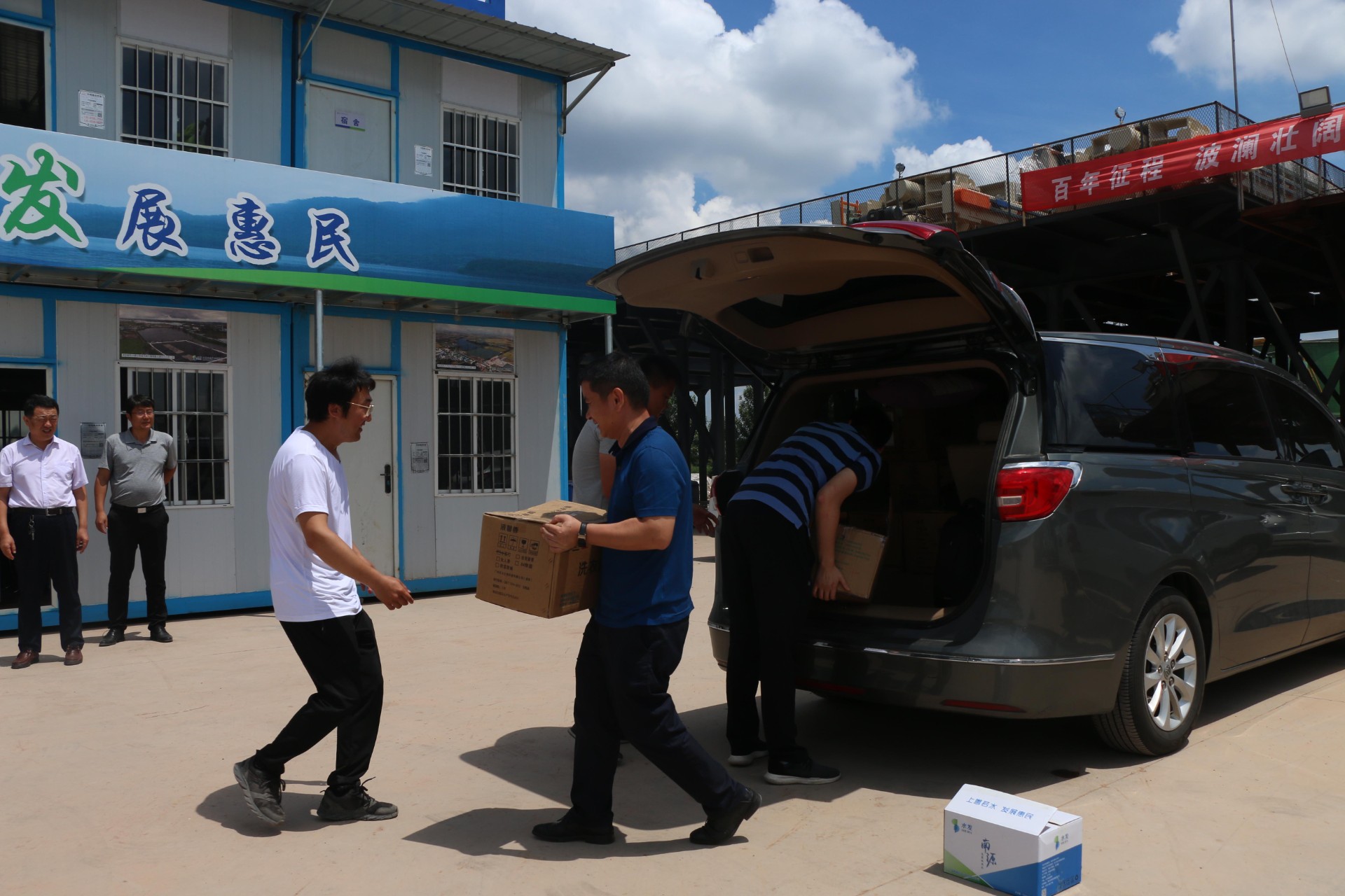 为做好高温天气劳动保护工作,更加全面及时便捷地服务户外一线职工,切实维护广大职工劳动安全健康权益,7月21日,水发生态工会来到山东环保产业研究院诸城市污泥填埋场环境综合整治应急处置项目工作现场开展“服务一线、夏送清凉”慰问活动,水发生态常务副总经理、山东环保产业研究院董事长王国防,水发生态工会主席黄建喜参加本次活动。
