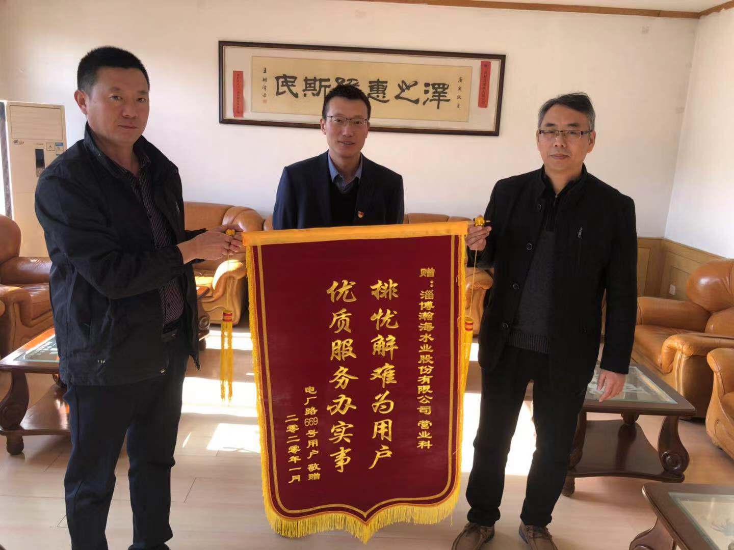 社区住户为淄博瀚海水业股份有限公司送锦旗表谢意