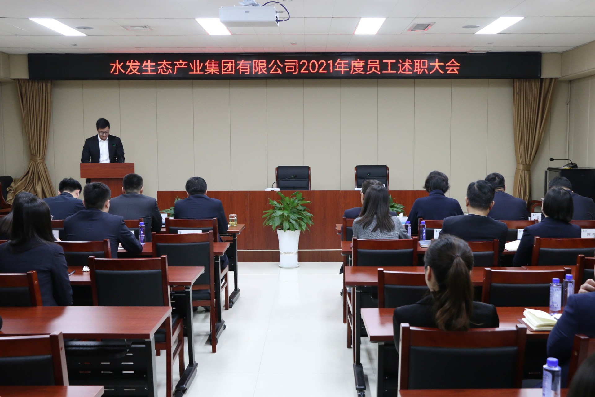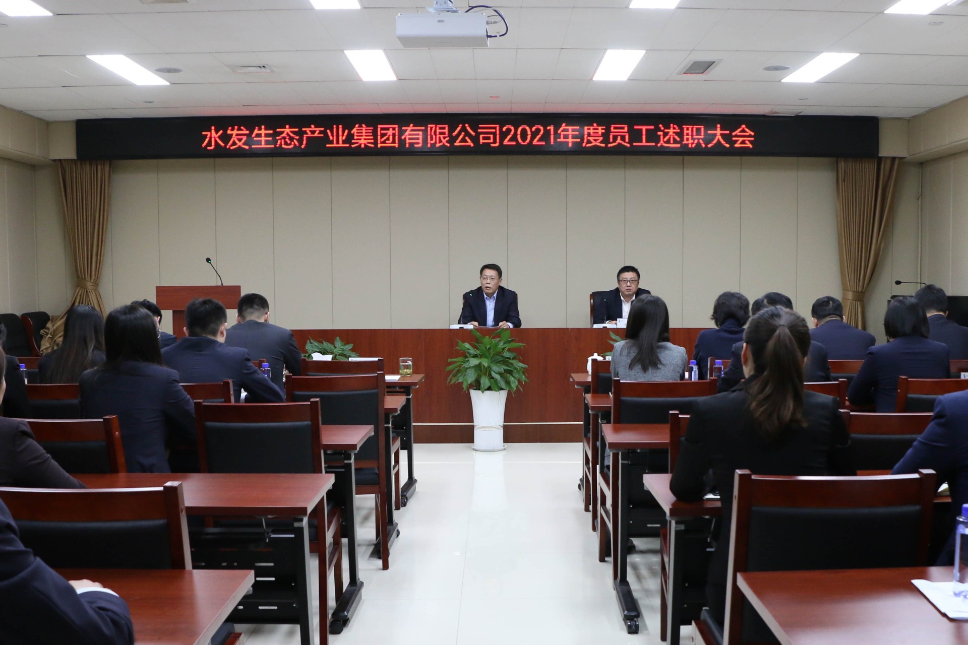 1月27日,水发生态集团组织召开2021年度职工述职评议大会,集团本部全体在济干部职工参加会议。集团党委书记、董事长公培山出席会议并讲话,会议由集团常务副总经理王国防主持。