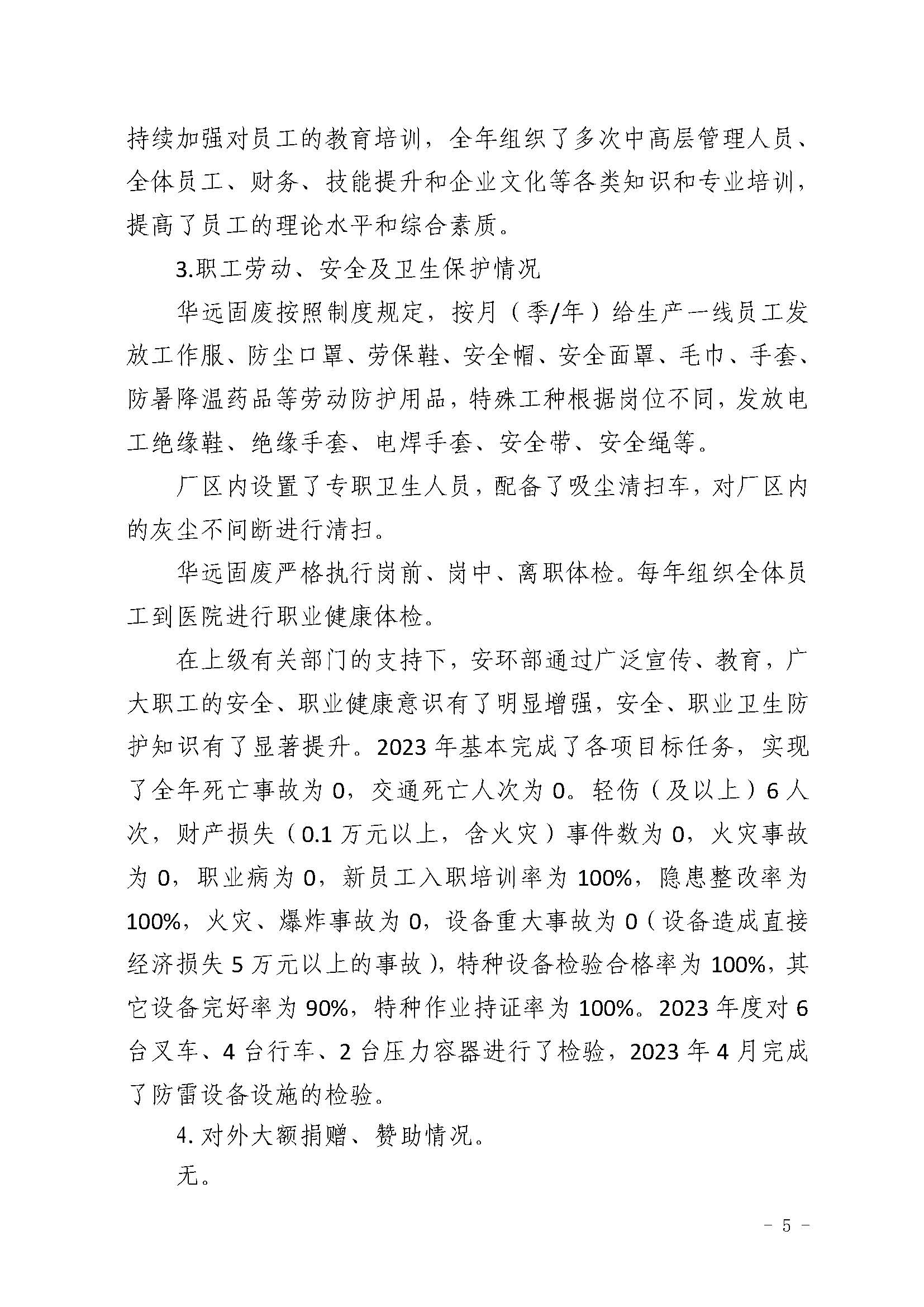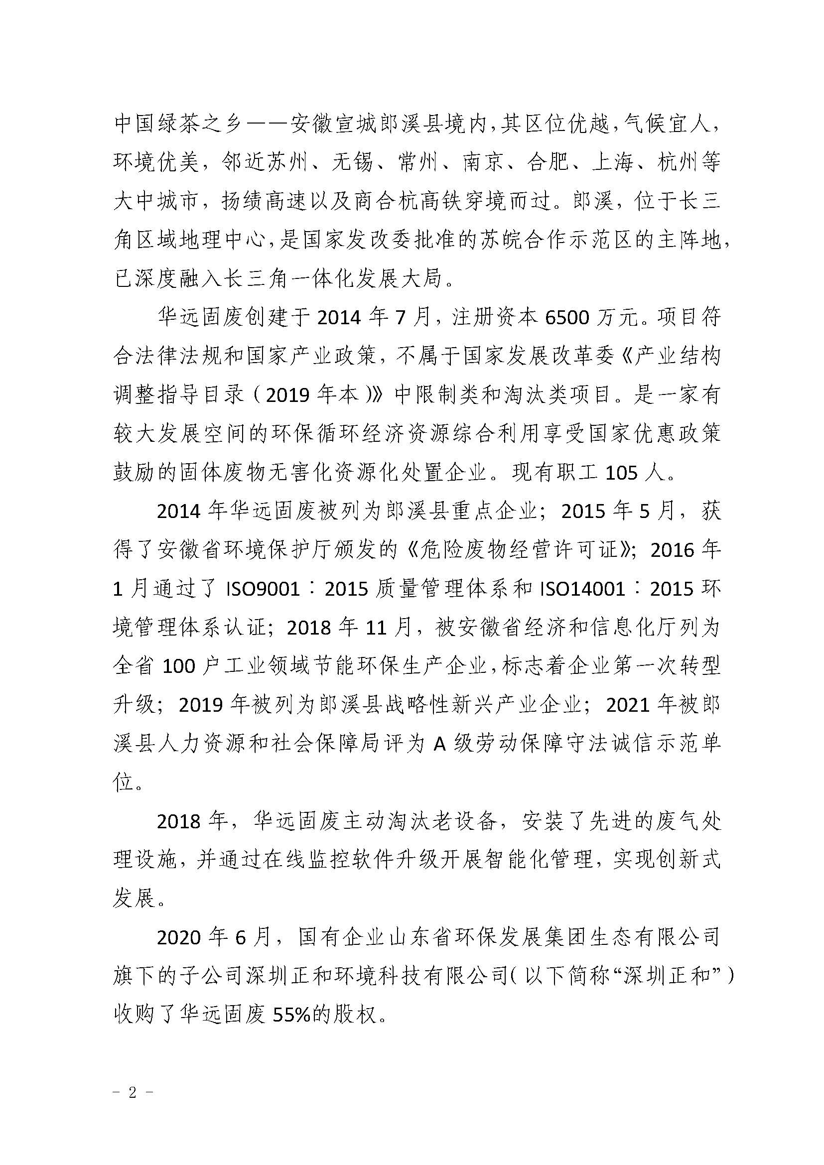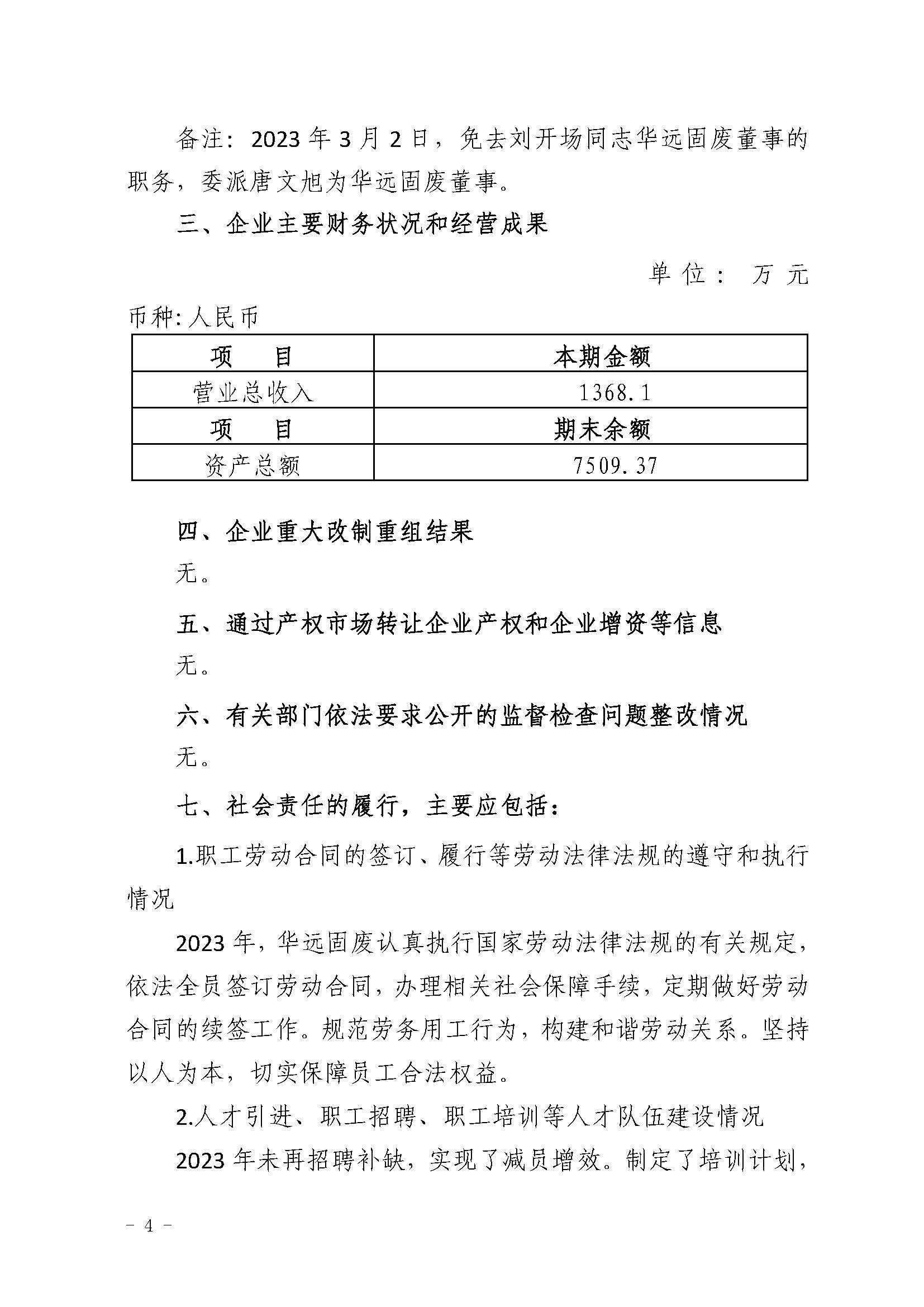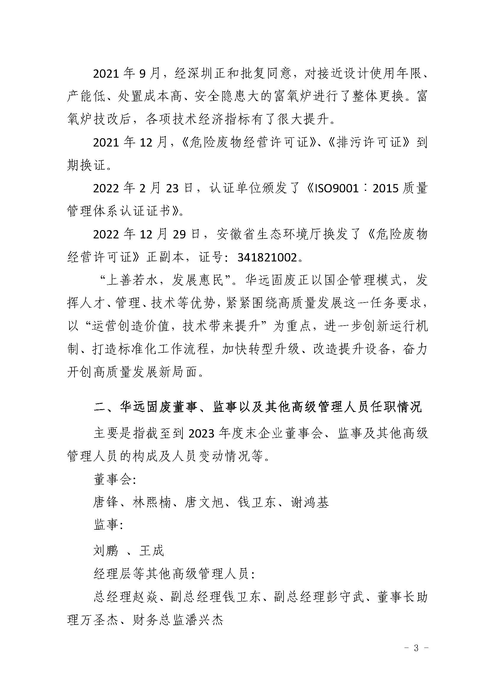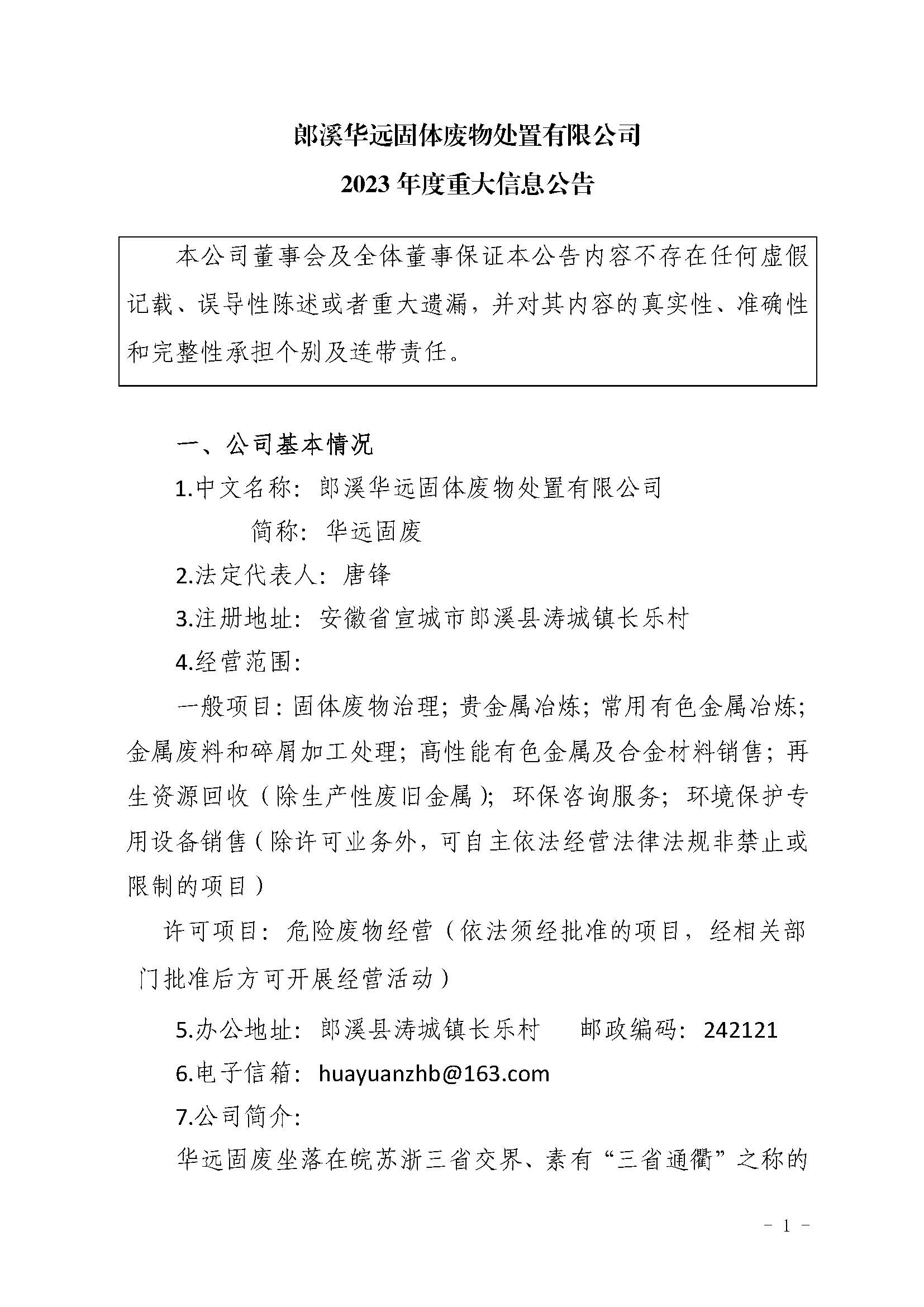 郎溪华远固体废物处置有限公司2023年度重大信息公告