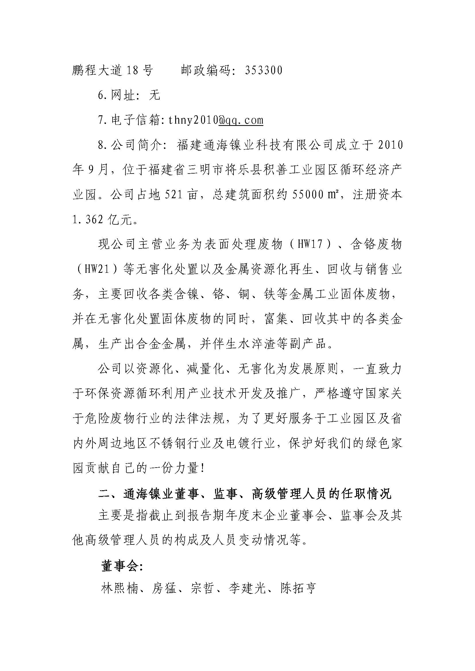 福建通海镍业科技有限公司2023年度重大信息公告