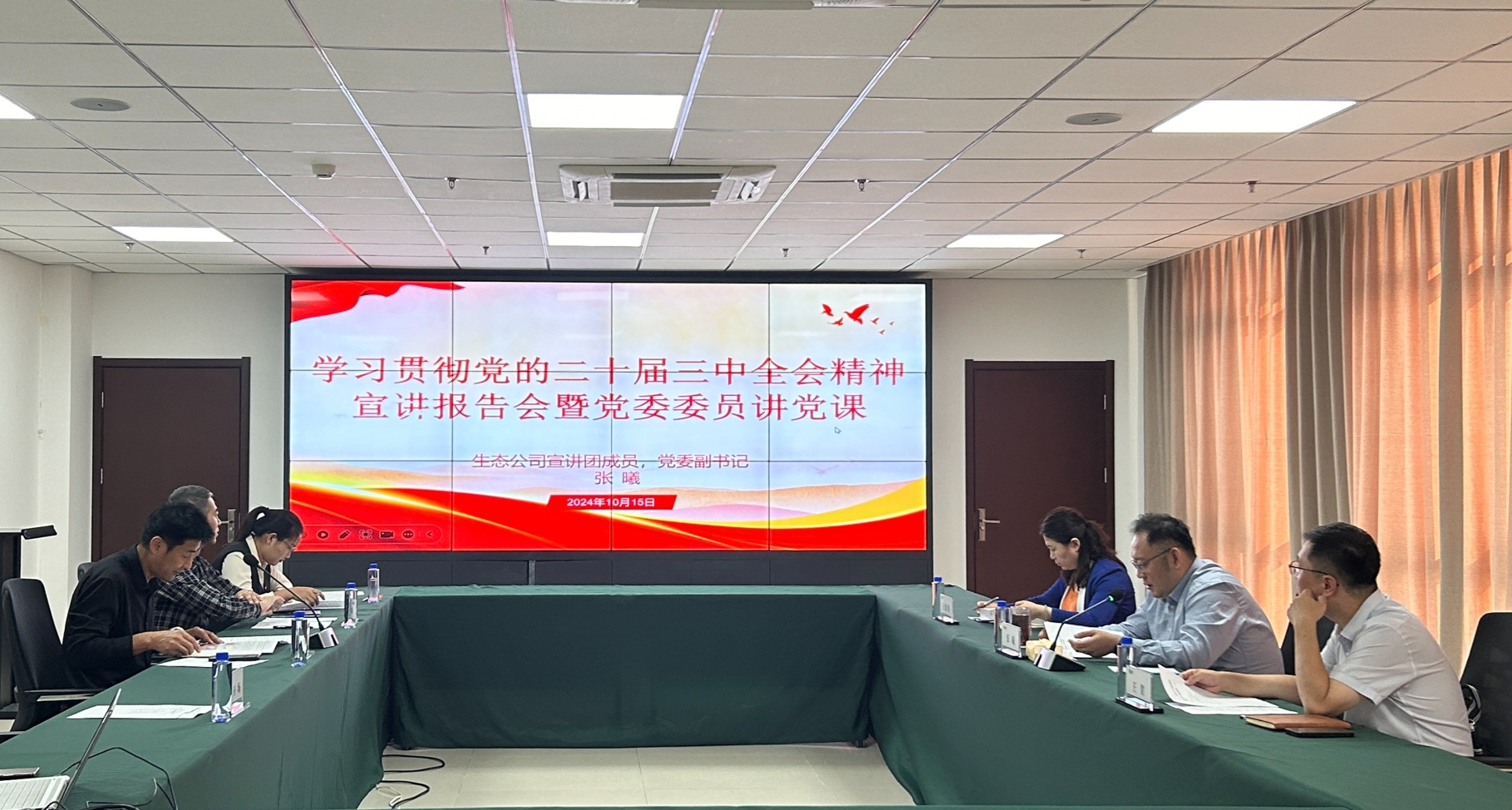 党的二十届三中全会是在以中国式现代化全面推进强国建设、民族复兴伟业的关键时期召开的一次具有里程碑意义的重要会议,会议对进一步全面深化改革、推进中国式现代化作出战略部署。全会召开后,生态公司党委迅速行动,召开学习贯彻党的二十届三中全会精神培训班和宣讲会,成立以党委班子为成员的党的二十届三中全会精神宣讲团,到各权属公司开展宣讲,全面深入学习贯彻党的二十届三中全会精神,并对公司本部及各权属公司系统抓好学习宣传贯彻作出安排部署。