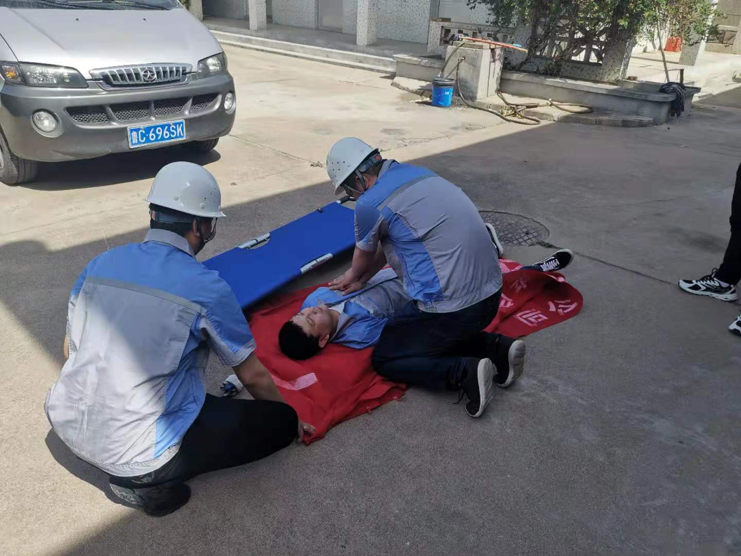 此次演练课题是模拟生产作业时,突发生产安全事故,现场人员迅速做出反应,按照应急程序进行处理。演练过程中主抓现场应急处置的几个关键要素,对如何报警,如何对受伤人员进行急救,如何防止事态的进一步扩大进行了现场演练。演练过程中,安全责任人反应迅速,指挥得当,救援人员能够正确施救,涉险员工能够有序脱险,展现出了较强的应变能力和团队协作能力。