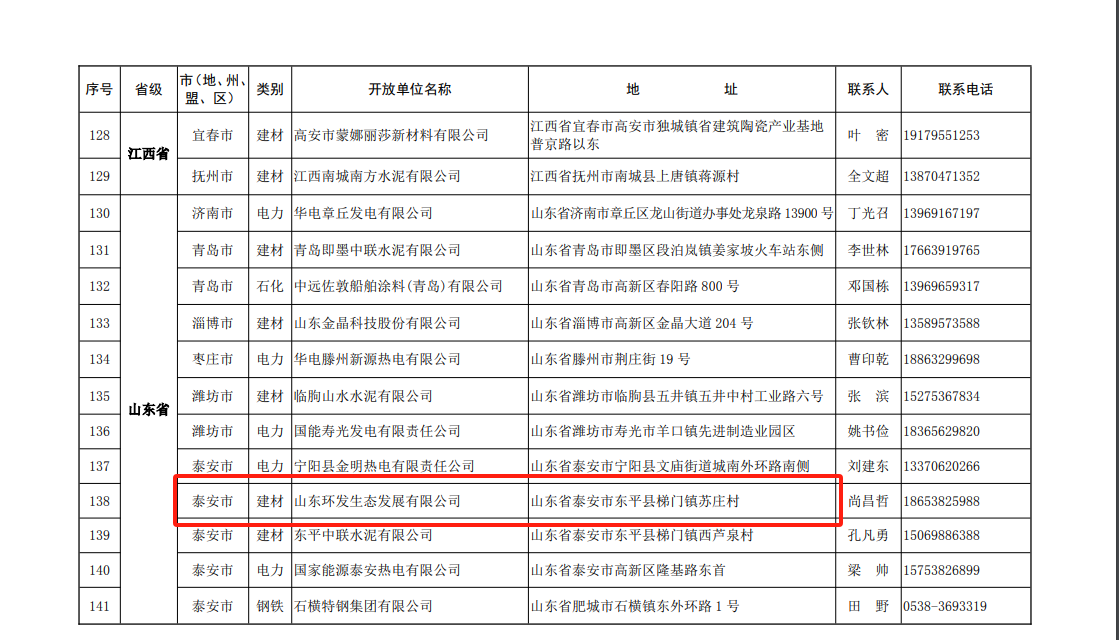 环保设施开放单位名单